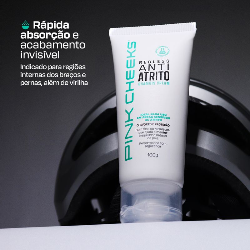 Conviver diariamente com assaduras ou improvisar produtos para se livrar do atrito não é mais uma opção. Com o ANTIATRITO REDLESS CHAMOIS CREAM, você tem mais conforto, proteção e performance na sua rotina. Com textura zero pegajosa e um combo poderoso de ativos hidratantes e antioxidantes, proporciona conforto e cuidado à pele exposta ao atrito, além de auxiliar na sua recuperação natural.