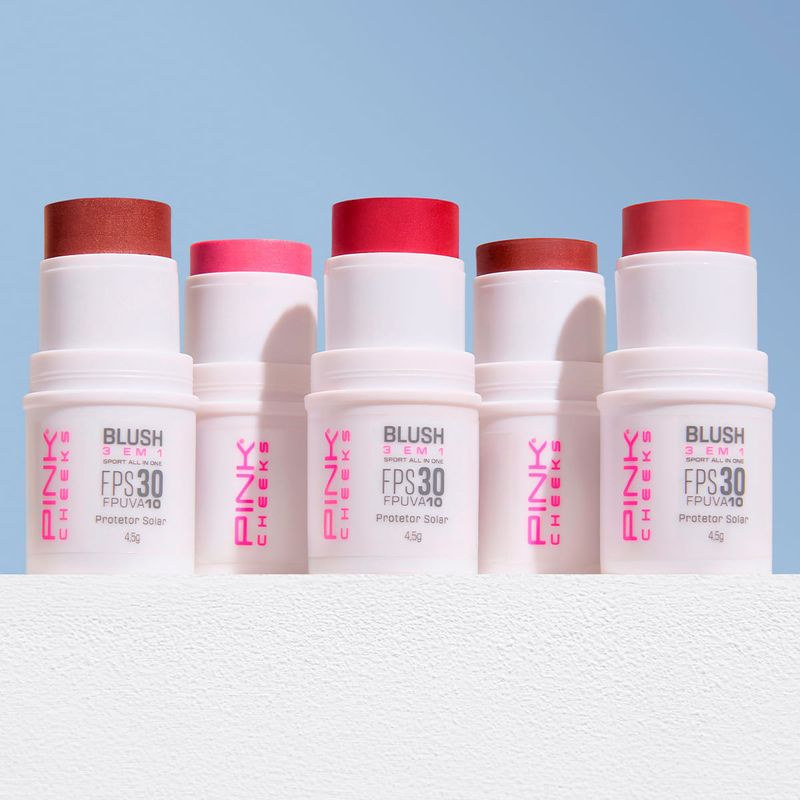 Alta proteção, tratamento, beleza e praticidade: nosso BLUSH SPORT ALL IN ONE em bastão com FPS 30 e FPUVA 10, versátil e multifuncional, pode ser usado como blush, batom e/ou sombra. Sua textura cremosa e confortável é fácil de espalhar. Com sensorial leve, sedoso e de rápida absorção, não deixa residual oleoso sobre a pele.