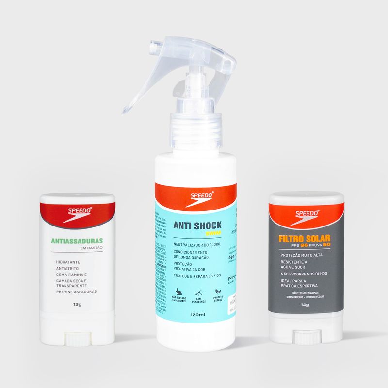 Sol, água, movimento e intensidade fazem parte da sua rotina? O KIT SPEEDO reúne três essenciais para proteger pele e cabelos em qualquer desafio, do treino ao dia a dia. Um trio pensado para oferecer resistência, conforto e cuidado contínuo, sem comprometer sua performance.