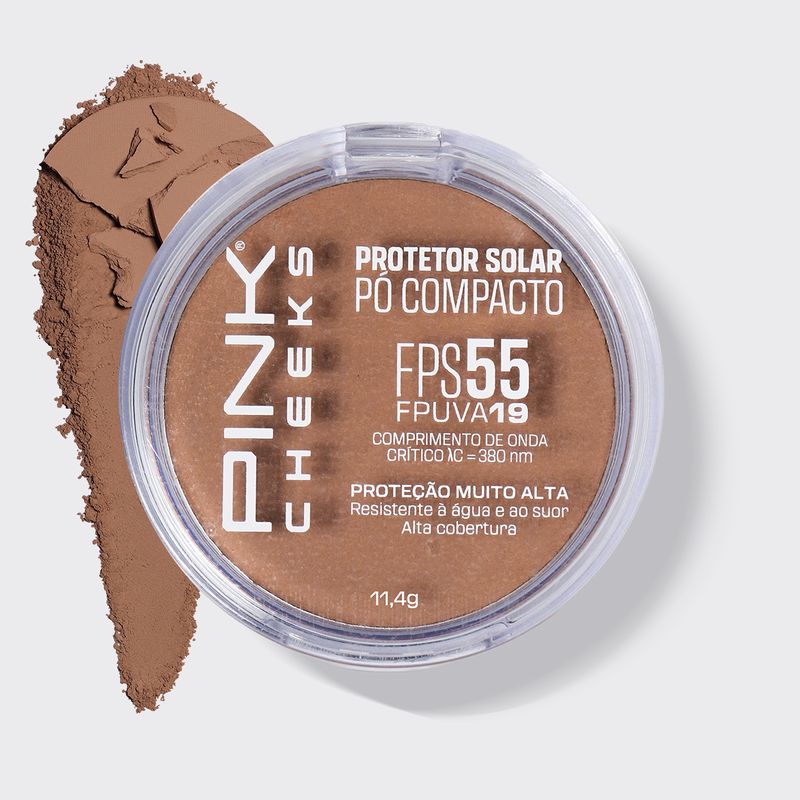 A gente entende esse desafio — e entrega a resposta. O PÓ COMPACTO da PINK CHEEKS é o nosso primeiro protetor solar com cor 100% mineral, altamente resistente à água e ao suor por até 12 horas, que controla a oleosidade e blinda a pele contra os efeitos nocivos do sol com FPS 55 e FPUVA 19.