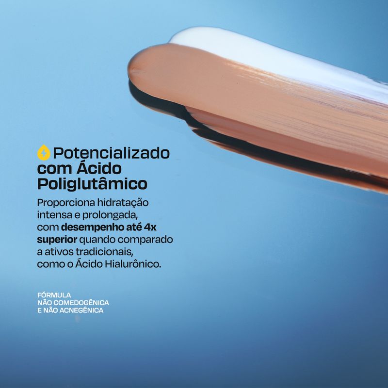 Ácido Poliglutâmico: forma um filme biomimético hidrofílico sobre a pele, reduz a perda de água transepidérmica (TEWL), mantém o conforto cutâneo mesmo sob exposição solar e entrega hidratação intensa e prolongada.