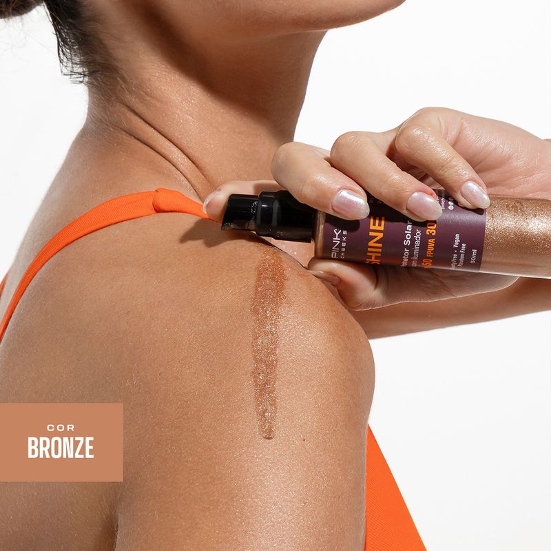 ‘Shining like the sun’ — é assim que você vai se sentir com o PROTETOR SOLAR ILUMINADOR CORPORAL SHINE. Com partículas douradas de brilho, ele protege sua pele enquanto deixa um acabamento glow super radiante, seja para brilhar nos treinos ou para levar mais elegância para o look daquele evento especial.