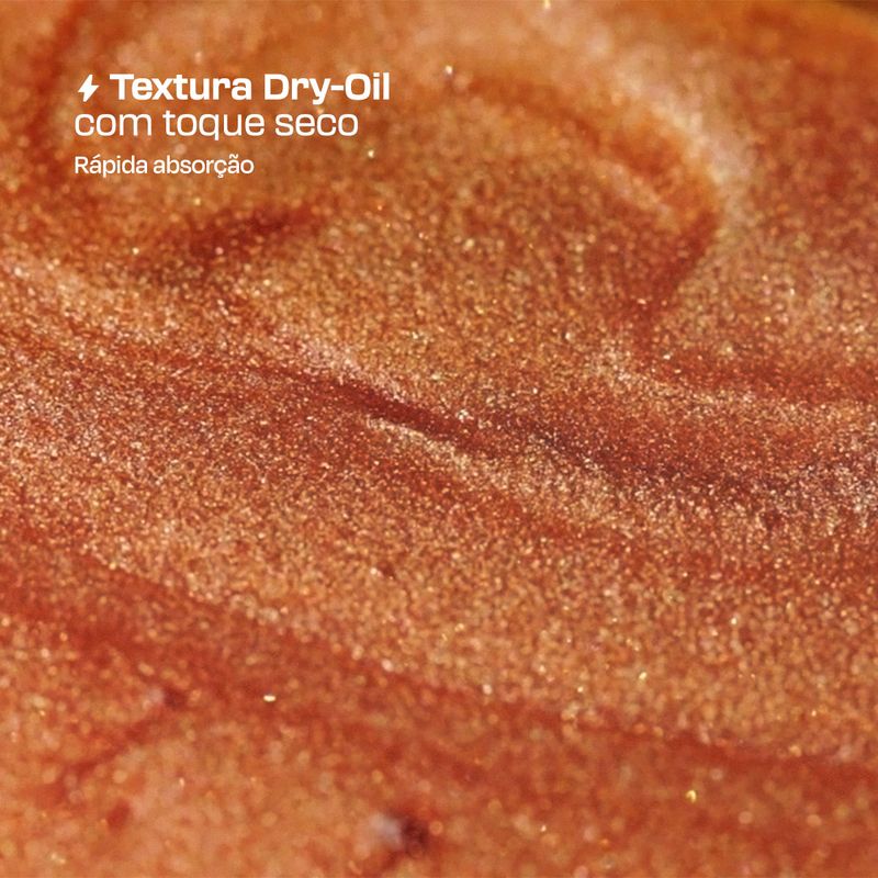 Com textura Dry Oil e partículas finas de brilho, o glow é garantido! Mas sem deixar o acabamento oleoso ou aquela sensação pegajosa, sabe? Após espalhar, o produto tem secagem rápida e o resultado é um sensorial sequinho e aspecto radiante.